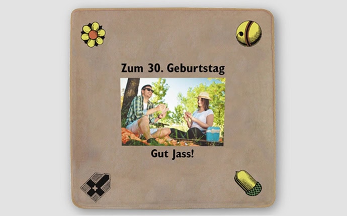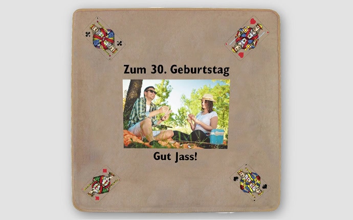 Individuell bedruckte Jassteppiche sind einzigartige, individuelle Geschenke. Bei jedem Jass sind sie oder ihr Unternehmen präsent.